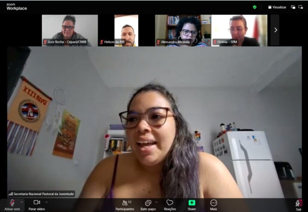 “Nós achamos que é muito importante que as pastorais sociais assumam pautas que movimentam, que chamam, conectam e atingem as juventudes, como a questão climática, o racismo estrutural e ambiental, e a luta pelo fim da escala 6×1”, enfatizou Mayra Santos, da Juventude Franciscana (JUFRA).