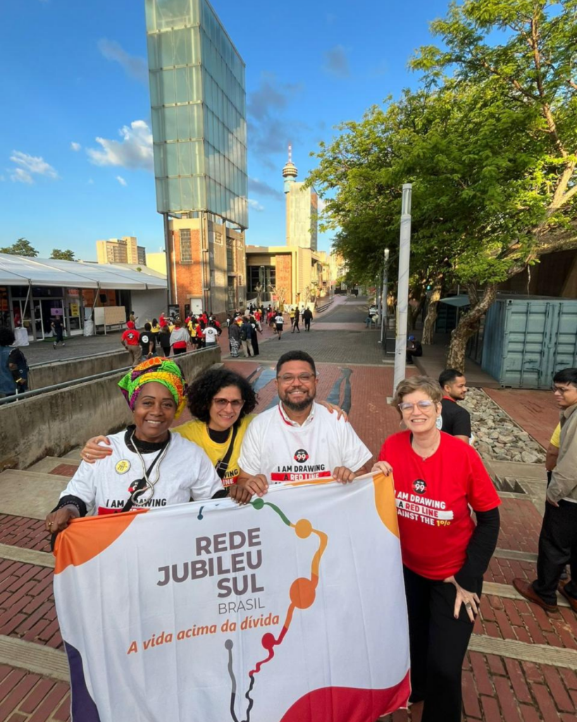 Representantes da Rede Jubileu Sul Brasil, do Instituto PACS e do Movimento Negro Unificado na Cúpula dos Povos paralela ao G20, na África do Sul.